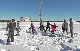 Pour le plaisir de jouer dans la neige, inspirez-vous des jeux proposés. Assurez-vous de bien attacher vos raquettes – un peu comme on le fait pour les patins. À l’intérieur ou à l’extérieur, assis sur un banc, prenez le temps de bien lacer les attaches.